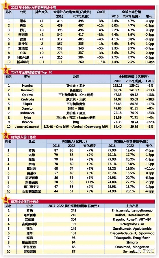 It is worth mentioning that this is the first time in the past ten years, EvaluatePharma lowered the sales forecast, in last years report, it predicts that in 2022 the global prescription drugs market will reach 11200 billion U. s.dollars.
