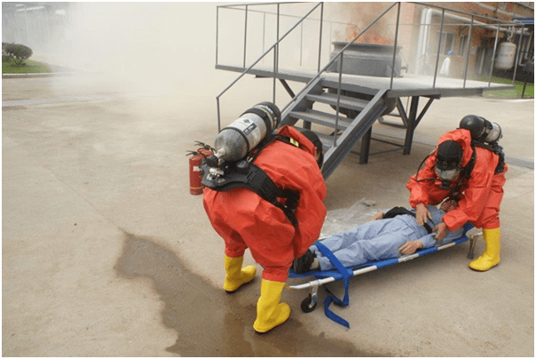 車間主任立馬組織搶救人員搶救,搶救人員在穿戴好空氣呼吸器和防護服之后,沖進現(xiàn)場搶救重傷人員。重傷人員抬出現(xiàn)場后,醫(yī)療救護組馬上對該傷員進行簡單的救護處理,立馬安排車輛將該重傷人員送至醫(yī)院進行救治。