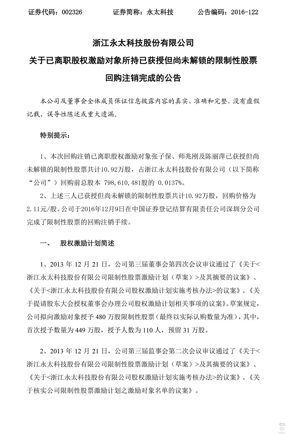 永太科技:關(guān)于已離職股權(quán)激勵對象所持已獲授但尚未解鎖的限制性股票回購注銷完成的公告