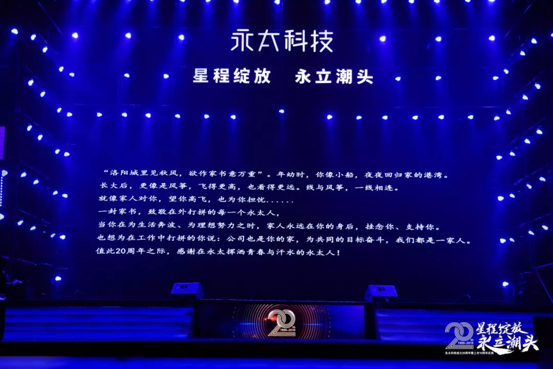 星程綻放,永立潮頭。12月21日,永太科技成立二十周年暨上市十周年慶典于臨海市體育館正式拉開帷幕,為大家?guī)?/span>一場視覺與聽覺的饕餮盛宴,共敘情誼,共創(chuàng)美好未來。