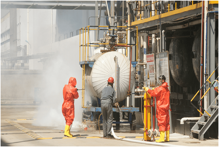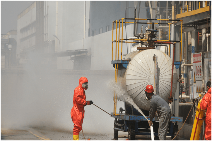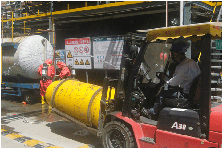 現(xiàn)場(chǎng)災(zāi)情控制組用小液氨鋼瓶控制災(zāi)情