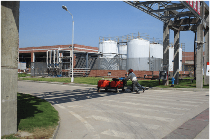 廠級(jí)物資志愿組運(yùn)來(lái)400kg液氨瓶