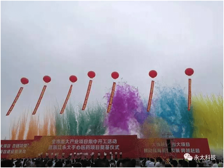 2017年6月7日,浙江省化學(xué)原料藥基地臨海園區(qū),歡快的音樂(lè)與抖擻的彩旗在永太手心和永太藥業(yè)飄揚(yáng)。今天,永太科技雙喜臨門,永太手心原料藥項(xiàng)目奠基及永太藥業(yè)制劑國(guó)際化項(xiàng)目竣工投產(chǎn)兩個(gè)里程碑事件同日舉行慶典活動(dòng)。